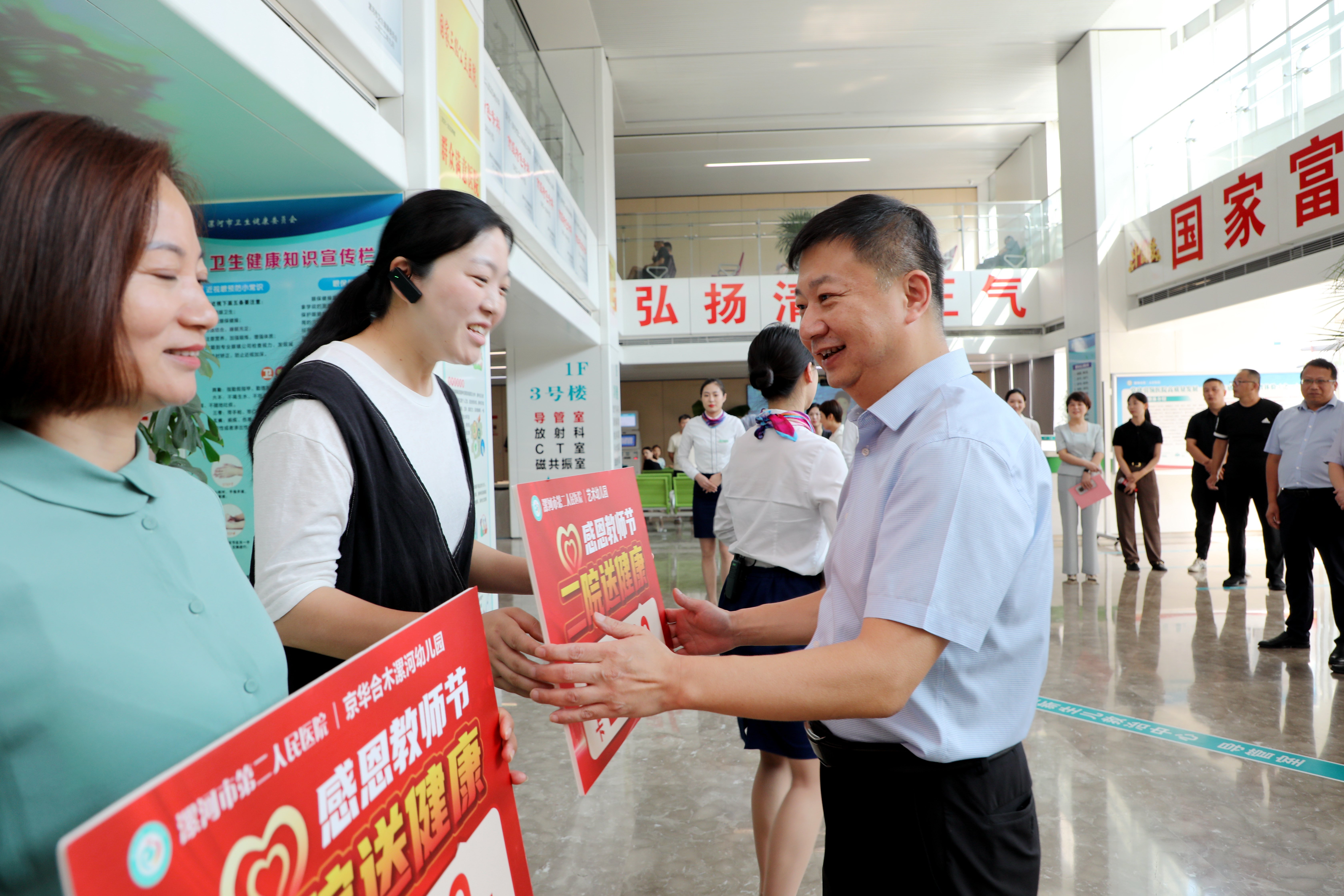 時值白露,金風送爽。在第39個教師節(jié)來臨之際,為致敬辛勤奉獻的廣大一線幼教園丁,9月8日上午,漯河市第二人民醫(yī)院隆重舉行全市健康協(xié)作幼兒園“致敬教師節(jié) 二院送健康”活動啟動儀式,醫(yī)院黨委書記魏松、院長王瑾攜班子成員、行管職能科長,及部分臨床、門診科室負責人參加活動。啟動儀式由紀委書記孟德陽主持。