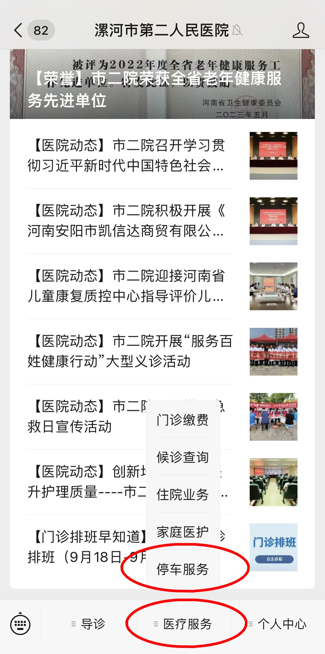 02.下滑點擊“醫(yī)療服務”--“停車服務”