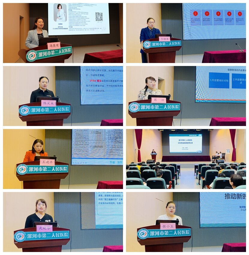 學(xué)術(shù)交流階段,河南省人民醫(yī)院腦血管病醫(yī)院總護(hù)士長(zhǎng)馮英璞教授以《基于??圃u(píng)估的腦卒中患者健康教育方案的制定及臨床實(shí)踐》為題,全面闡述了臨床護(hù)理工作中如何做好患者的健康指導(dǎo),結(jié)合實(shí)例講解通過(guò)對(duì)患者健康教育方案的制定去實(shí)現(xiàn)全生命周期的健康管理的重要性;漯河市中心醫(yī)院孫桂華講解了《信息化+健康教育臨床路徑化》;漯河市骨科醫(yī)院陳笑寒講解了《加速康復(fù)外科健康教育的應(yīng)用》;漯河市第六人民醫(yī)院葛潔講解了《健康教育 我們?cè)诼飞稀?;郾城區(qū)人民醫(yī)院王艷平 講解了《健康教育在優(yōu)質(zhì)護(hù)理服務(wù)中的臨床應(yīng)用》;漯河市第二人民醫(yī)院蔡新華、武曉攀、張小玉分別用大量實(shí)例進(jìn)行了門診、病房健康教育案例分享。參會(huì)代表認(rèn)真聽(tīng)講、互動(dòng)環(huán)節(jié)踴躍交流,積極探討, 為臨床健康教育事業(yè)創(chuàng)新發(fā)展建言獻(xiàn)策,會(huì)議現(xiàn)場(chǎng)學(xué)術(shù)氛圍濃厚。