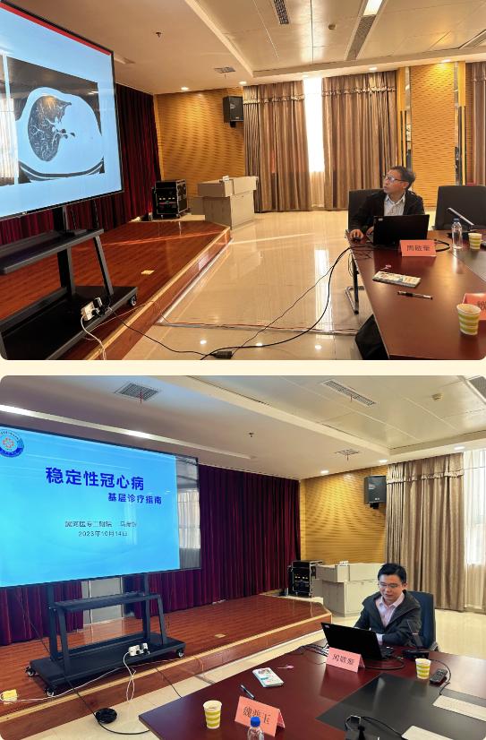 沙龍活動現(xiàn)場,主要采取學術(shù)講座與現(xiàn)場討論交流形式進行。呼吸內(nèi)科周敬奎主任,共產(chǎn)黨員、沈昊昊主治醫(yī)師,心血管內(nèi)科二病區(qū)馬彥輝副主任醫(yī)師分別就《肺栓塞的規(guī)范診治》《高血壓心臟病的規(guī)范診治》《穩(wěn)定性冠心病基層診療指南》進行精彩分享。講課結(jié)束后各位專家結(jié)合自身臨床經(jīng)驗及個人專業(yè)特點,圍繞具體病例進行學術(shù)討論,進一步提高了醫(yī)聯(lián)體基層醫(yī)務(wù)人員的理論知識,參會人員紛紛表示受益匪淺。