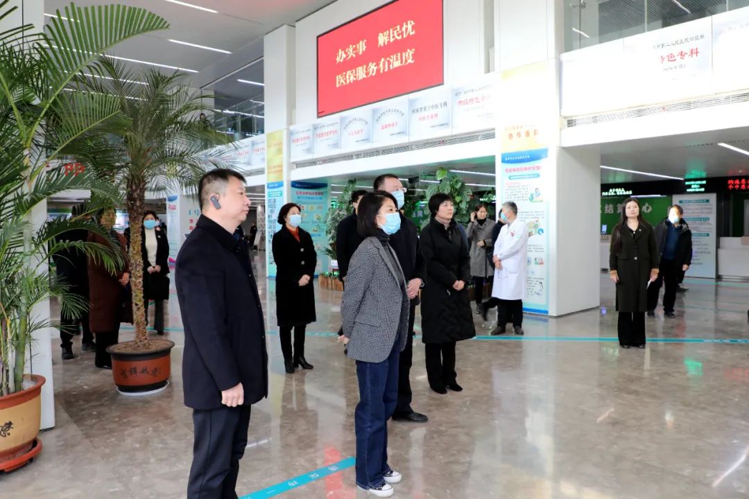 12月19日上午,副市長宋琰琰蒞臨市二院,調(diào)研門診慢性病全流程線上申報認(rèn)定、醫(yī)保一站式服務(wù)情況及醫(yī)保相關(guān)工作,市醫(yī)保局黨委書記、局長李紅衛(wèi)等參加調(diào)研。市二院黨委書記魏松、院長王瑾及醫(yī)院領(lǐng)導(dǎo)班子成員、部分職能科長等陪同調(diào)研。