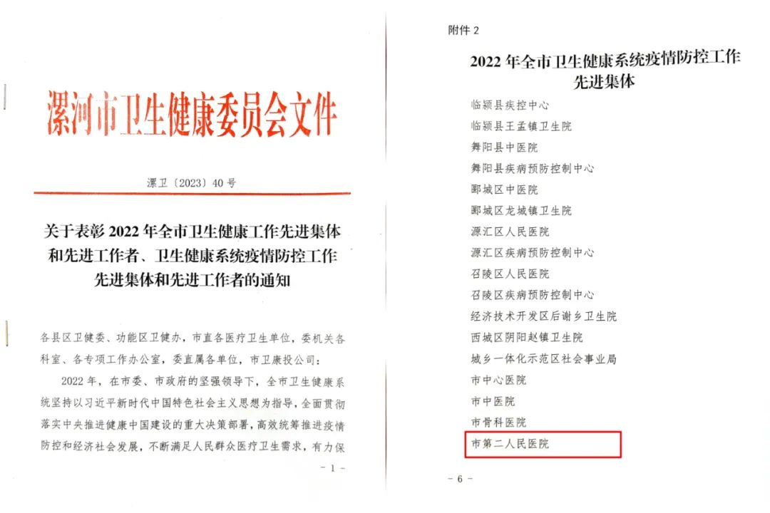 2月8日,河南省愛國衛(wèi)生運動委員會公布《河南省愛衛(wèi)會關(guān)于命名2022年度河南省衛(wèi)生先進(jìn)單位 衛(wèi)生村 衛(wèi)生居民小區(qū)的通知》,市二院被重新命名為“2022年度河南省衛(wèi)生先進(jìn)單位”。