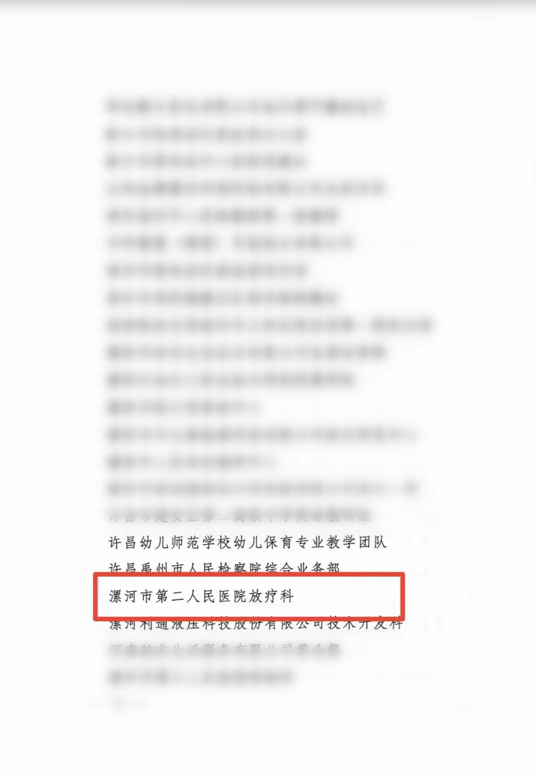 近日,共青團(tuán)河南省委等部門(mén)聯(lián)合印發(fā)了《關(guān)于命名“2021-2022年度河南省青年文明號(hào)和河南省青年崗位能手”的決定》,市二院放療科被授予河南省“青年文明號(hào)”榮譽(yù)稱(chēng)號(hào)。
