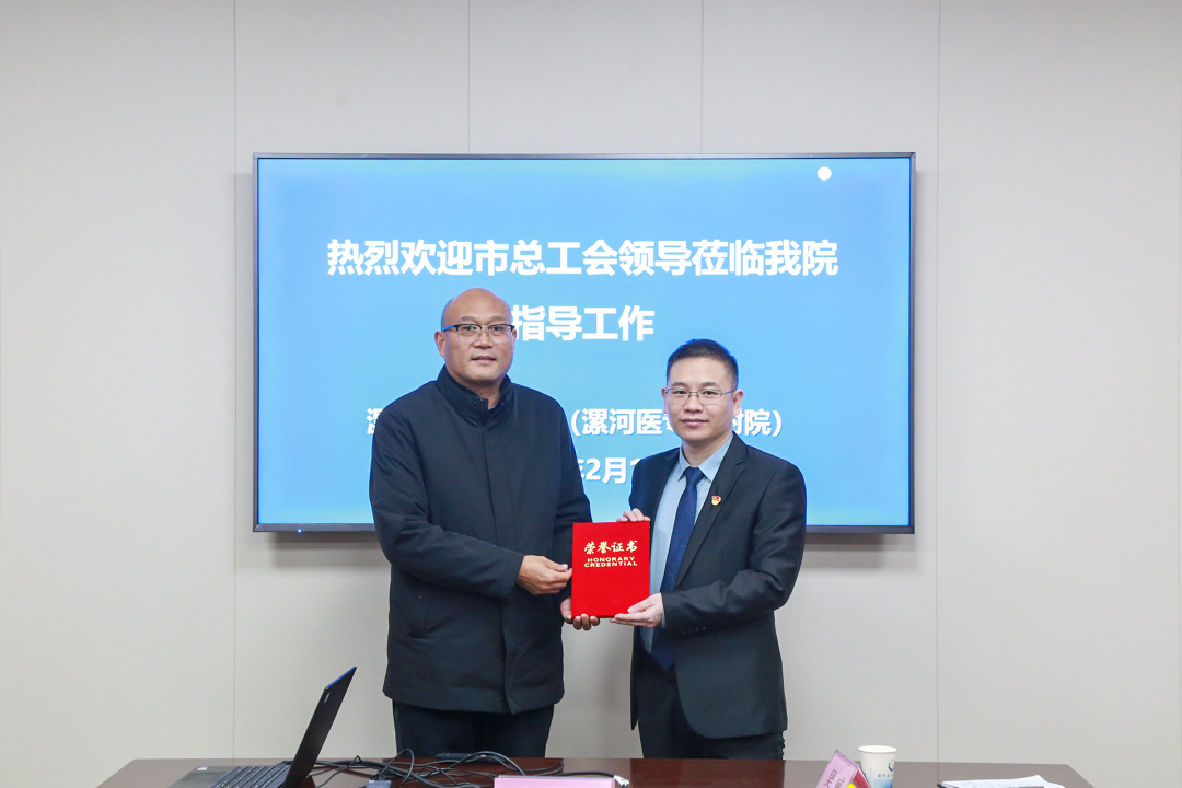 2月1日,漯河市總工會(huì)黨組成員、副主席張振凡,市總工會(huì)科教文衛(wèi)體工會(huì)主任谷賀衛(wèi)專(zhuān)程來(lái)院將榮譽(yù)證書(shū)送到陳小村和陳宏峰手中,勉勵(lì)他們立足本職、再接再厲,不斷提高道德水平和業(yè)務(wù)素質(zhì),為推動(dòng)我市衛(wèi)生事業(yè)全面深入發(fā)展作出新的更大貢獻(xiàn)。