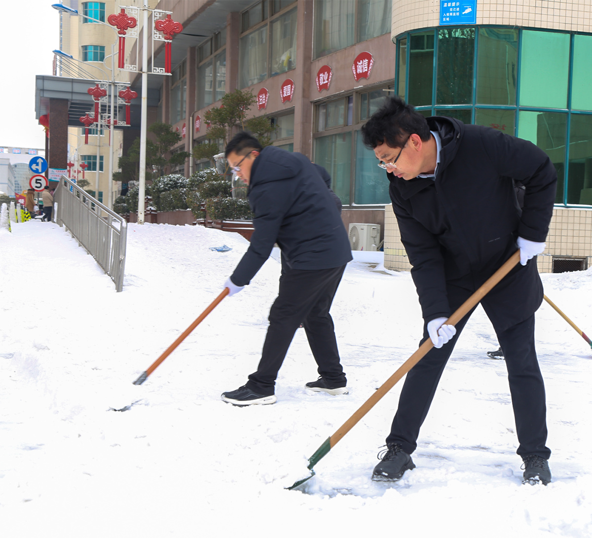 院內(nèi)掃雪結(jié)束后,院黨委書記柴運(yùn)洪、院長(zhǎng)李奎等領(lǐng)導(dǎo)班子成員,又來(lái)到位于北環(huán)淞江路的醫(yī)院分包路段開(kāi)展除雪。雖然戶外溫度低至零下,但大家無(wú)懼嚴(yán)寒,配合默契,迅速完成了清掃任務(wù),充分體現(xiàn)出該院作為三級(jí)綜合公立醫(yī)院的社會(huì)責(zé)任與擔(dān)當(dāng)。