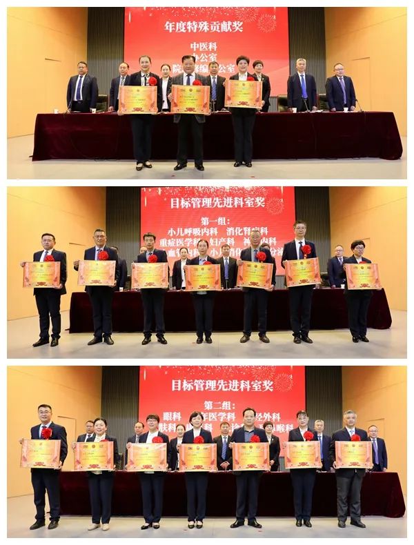 本次工作會(huì)是醫(yī)院開啟2024年高質(zhì)量發(fā)展新篇章、奮進(jìn)三甲創(chuàng)建新征程關(guān)鍵節(jié)點(diǎn)上召開的鼓干勁、聚合力的重要會(huì)議。副院長謝彩玲、副院長郭長根、紀(jì)委書記孟德陽、副院長張曉東、工會(huì)主席李世學(xué)按照大會(huì)既定議程,依次宣讀了2023年度先進(jìn)集體、先進(jìn)工作者等表彰文件和表彰名單,對(duì)2023年度特殊貢獻(xiàn)獎(jiǎng)、目標(biāo)管理先進(jìn)科室、質(zhì)量管理獎(jiǎng)、優(yōu)質(zhì)服務(wù)獎(jiǎng)、先進(jìn)工作者進(jìn)行了表彰。被表彰科室代表和先進(jìn)個(gè)人代表披紅戴花,精神抖擻,從院領(lǐng)導(dǎo)手中接過象征榮譽(yù)和期望的獎(jiǎng)牌、獎(jiǎng)狀,熱烈的掌聲響徹學(xué)術(shù)報(bào)告廳,展現(xiàn)了二院人奮勇拼搏、干必出彩的良好精神風(fēng)貌,為新的一年工作擂響了戰(zhàn)鼓,鼓足了干勁。