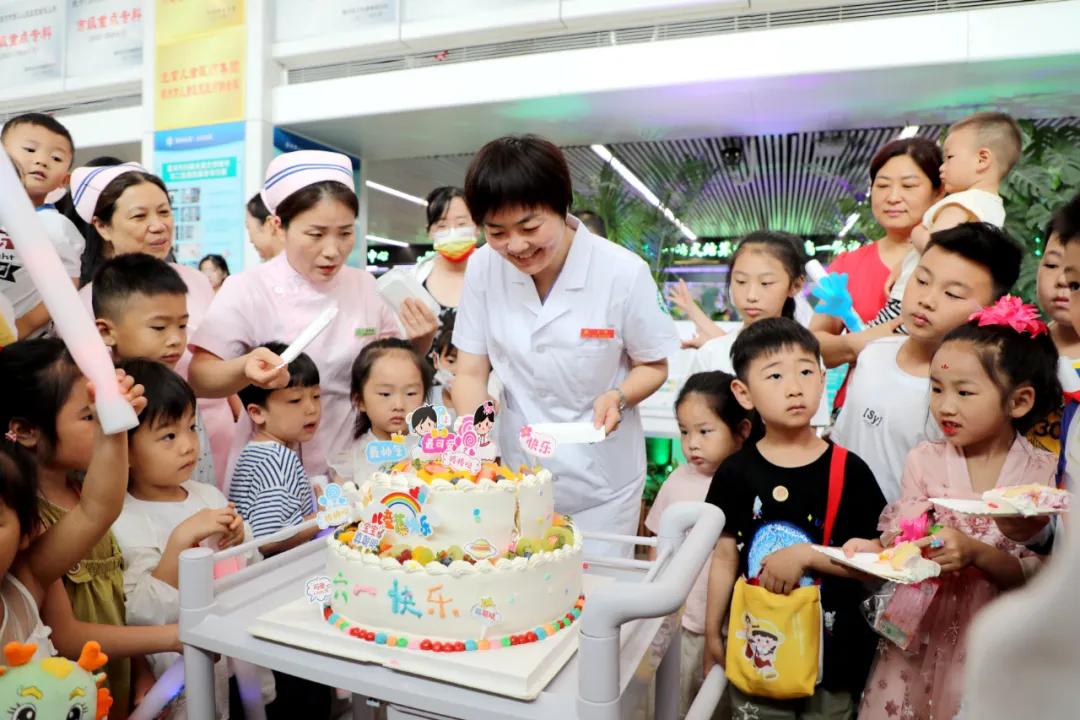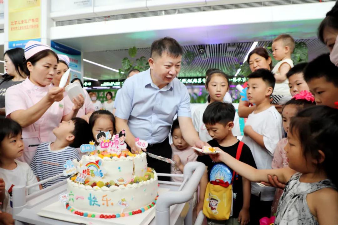 在門(mén)診大廳,黨委書(shū)記魏松、院長(zhǎng)王瑾與兒科專(zhuān)家、護(hù)士長(zhǎng)、孩子們一起切下節(jié)日蛋糕,并代表全院醫(yī)護(hù)人員對(duì)孩子們表示衷心的祝福,希望孩子們健康快樂(lè)成長(zhǎng)?,F(xiàn)場(chǎng),醫(yī)護(hù)人員化身白雪公主、花仙子、小黃人、網(wǎng)紅青蛙與小朋友們熱情互動(dòng),友好交流,派發(fā)精心準(zhǔn)備的節(jié)日禮物。