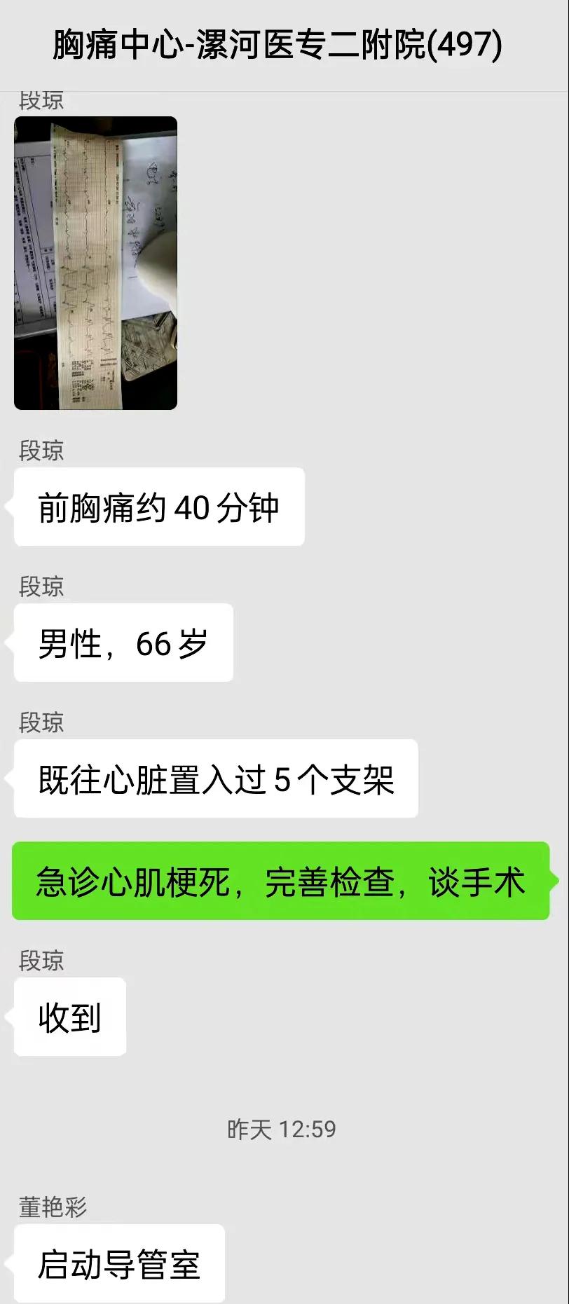 7月4日中午,漯河市骨科醫(yī)院(漯河醫(yī)專二附院、漯河市立醫(yī)院)胸痛中心工作群內,一連串工作指令相繼發(fā)出。