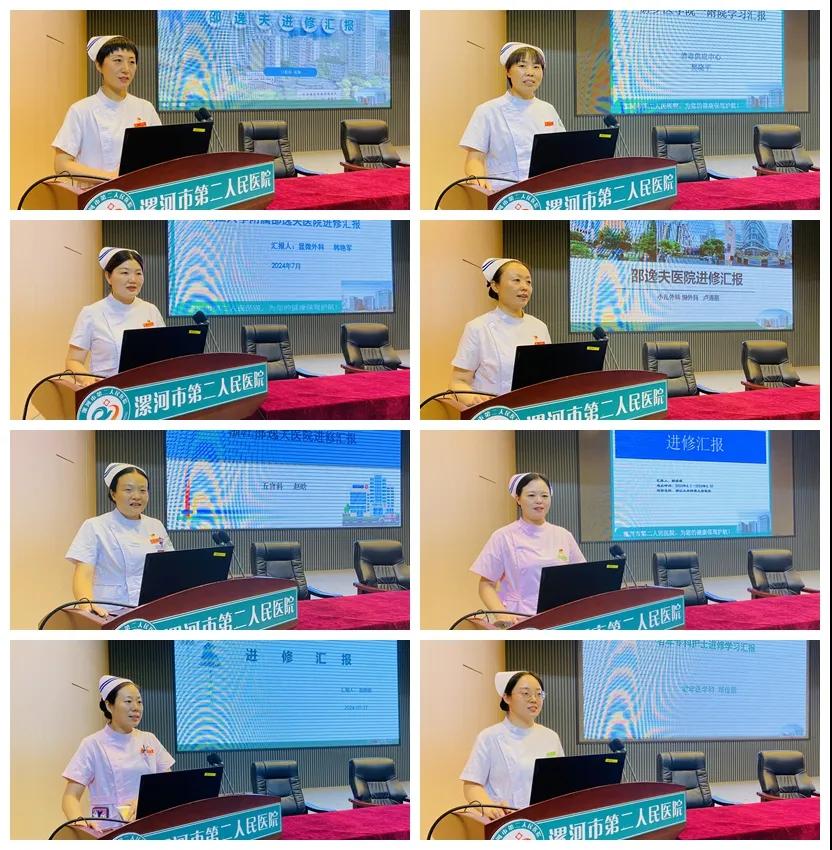 匯報(bào)會(huì)上,12名進(jìn)修護(hù)士分別從不同專業(yè)領(lǐng)域,將自己外出學(xué)習(xí)的所見所聞、所思所想等用精彩的圖文,以PPT的形式展示了所進(jìn)修醫(yī)院的專業(yè)技術(shù)、管理模式、護(hù)理理念、人性化護(hù)理服務(wù)、??谱o(hù)理特點(diǎn)等,并結(jié)合各自的專業(yè)特點(diǎn)和學(xué)習(xí)方向,自己??平ㄔO(shè)、護(hù)理文化、管理理念、先進(jìn)技術(shù)、工作流程、服務(wù)細(xì)節(jié)、學(xué)習(xí)感悟等方面進(jìn)行多角度、全方位的展示。同時(shí)將自身所學(xué)與工作實(shí)際相結(jié)合,制定了下一步工作改進(jìn)方案,達(dá)到了“一人學(xué)習(xí)、全院共享、共同進(jìn)步”的目的。本次匯報(bào)既是進(jìn)修成效的分享交流,更是一次思維的碰撞、??频慕涣?、理念的創(chuàng)新。