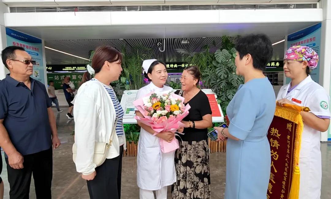 8月23日,來(lái)自鞏義的患者家屬一行四人攜鮮花、錦旗、禮品,驅(qū)車(chē)200公里到市二院,找到該院副院長(zhǎng)劉橋和重癥醫(yī)學(xué)科護(hù)士長(zhǎng)蔡新華直接表達(dá)來(lái)意:我們要給貴院重癥醫(yī)學(xué)科護(hù)士王美娜“送禮”,并希望院領(lǐng)導(dǎo)一定要好好表?yè)P(yáng)她:“要是沒(méi)有她,我們都不敢想會(huì)有啥后果!”