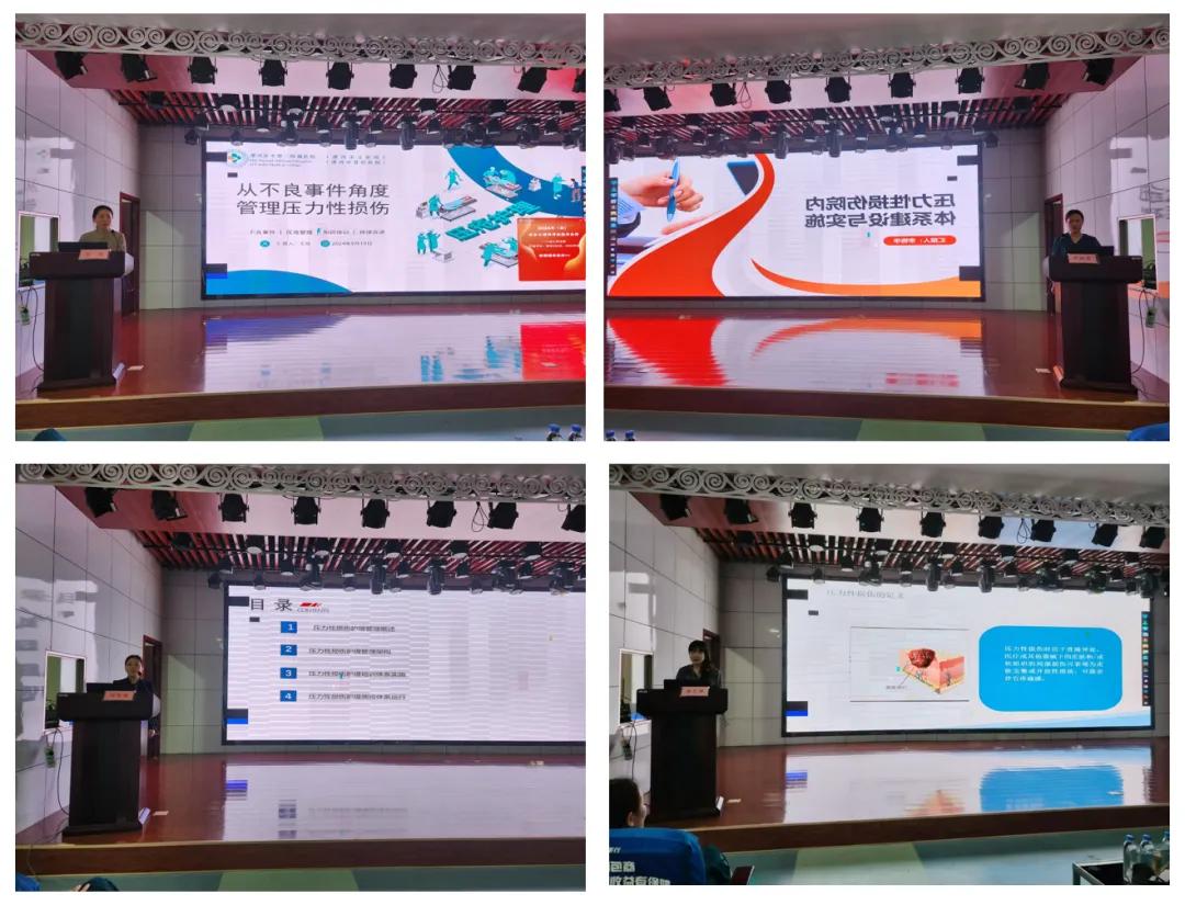 為有效推進對醫(yī)共體醫(yī)院對口幫扶計劃落實,促進優(yōu)質(zhì)資源下沉至基層,9月19日,漯河市骨科醫(yī)院(漯河醫(yī)專二附院、漯河市立醫(yī)院)中醫(yī)骨傷科護士長王瓊,壓力性損傷學(xué)組副組長、康復(fù)醫(yī)學(xué)科護士長田智慧,壓力性損傷學(xué)組秘書、中德國際傷口治療師李艷華,壓力性損傷學(xué)組骨干成員張藝萍一行來到郾城區(qū)人民醫(yī)院為護理團隊帶來了一堂關(guān)于壓力性損傷院內(nèi)體系建設(shè)與實施護理專題培訓(xùn),以提升其對壓力性損傷醫(yī)院內(nèi)管理、培訓(xùn)、質(zhì)控以及壓力性損傷最新分期方法和處理措施的認知和應(yīng)對能力。
