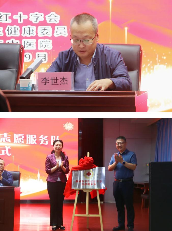 為積極響應(yīng)社會(huì)公益號(hào)召,弘揚(yáng)紅十字精神,促進(jìn)醫(yī)療衛(wèi)生與志愿服務(wù)深度融合,2024年9月25日上午,市紅十字會(huì)、市衛(wèi)健委聯(lián)合市中醫(yī)院在醫(yī)院門診四樓學(xué)術(shù)報(bào)告廳隆重舉辦“喜迎國(guó)慶 志愿同行——漯河市中醫(yī)院紅十字志愿服務(wù)隊(duì)揭牌授旗儀式”。市紅十字會(huì)黨組書記、常務(wù)副會(huì)長(zhǎng)孫潁華,市衛(wèi)健委黨組副書記、副主任王向良,市中醫(yī)院黨委書記楊軼,市中醫(yī)院黨委副書記、副院長(zhǎng)楚勝,市紅十字會(huì)黨組成員、副會(huì)長(zhǎng)李世杰出席揭牌授旗儀式。各縣區(qū)、功能區(qū)紅十字會(huì)負(fù)責(zé)同志、市直醫(yī)療衛(wèi)生機(jī)構(gòu)和漯河醫(yī)專各附屬醫(yī)院分管領(lǐng)導(dǎo)以及市中醫(yī)院志愿者職工代表近200人參加。會(huì)議由楚勝主持。