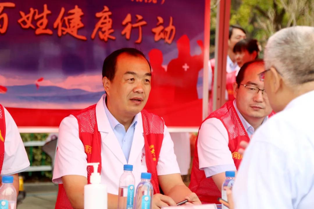 喜迎國慶,健康惠民。9月28日上午,在市衛(wèi)健委的統(tǒng)一組織下,漯河市骨科醫(yī)院(漯河醫(yī)專二附院、漯河市立醫(yī)院)黨委書記柴運(yùn)洪、院長王齊超、副院長吳廣良帶領(lǐng)由骨科、內(nèi)科、外科、眼科、皮膚科、護(hù)理部、社工部共18位醫(yī)療專家組成的志愿者服務(wù)隊(duì),在雙匯廣場開展了“服務(wù)百姓健康行動(dòng)”集中大型義診活動(dòng)。