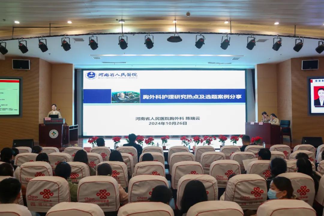 會(huì)議內(nèi)容豐富多彩,涵蓋了胸外科護(hù)理的多個(gè)熱點(diǎn)話題和前沿技術(shù)。河南省人民醫(yī)院胸外科一病區(qū)護(hù)士長(zhǎng)陳瑞云以其深厚的學(xué)術(shù)功底和豐富的實(shí)踐經(jīng)驗(yàn),為大家?guī)?lái)了《胸外科護(hù)理研究熱點(diǎn)分析及選題案例分享》。她通過(guò)生動(dòng)的案例,深入剖析了當(dāng)前胸外科護(hù)理領(lǐng)域的研究熱點(diǎn),為參會(huì)者提供了寶貴的選題思路和研究方向。
