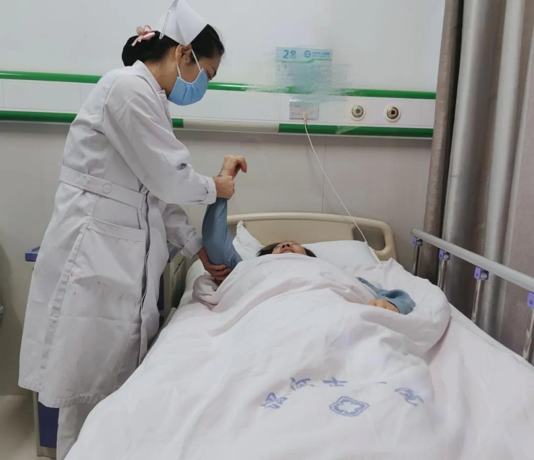 偏癱患者肢體需擺放功能位,防止肢體痙攣。為此,科室護理團隊進行“提高良肢位擺放的準確率”的質(zhì)量改進,指導(dǎo)和幫助患者家屬擺放良肢位,取得了良好的效果。同時責(zé)任護士針對患者疾病特點,制定了個性化的功能鍛煉計劃,如良肢位擺放、踝泵運動、吞咽鍛煉、攝食訓(xùn)練、言語鍛煉、認知訓(xùn)練、肢體氣壓等等。