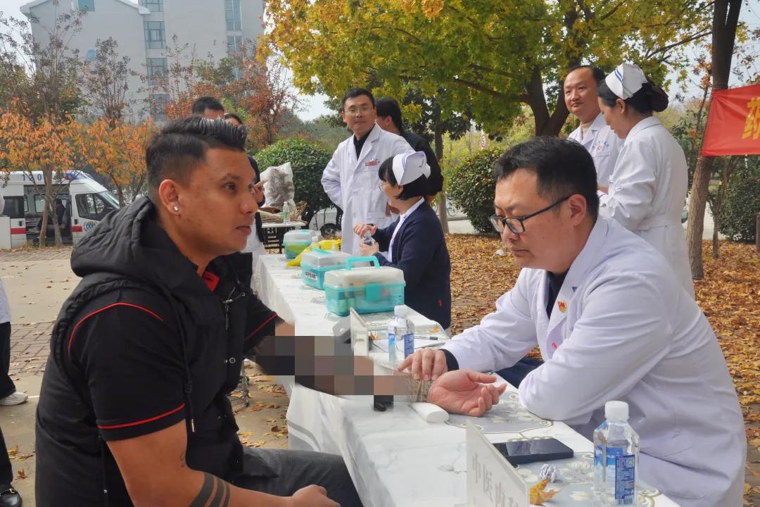 中醫(yī)義診區(qū)域,副主任中醫(yī)師彭壯、主治中醫(yī)師李佳攜手坐診,學(xué)生們排起了長(zhǎng)長(zhǎng)的隊(duì)伍前來(lái)體驗(yàn)中醫(yī)號(hào)脈等特色診療服務(wù)。在漯河醫(yī)專學(xué)習(xí)的數(shù)名外國(guó)留學(xué)生深深熱愛(ài)著中華傳統(tǒng)文化,對(duì)中醫(yī)藥知識(shí)有著濃厚的興趣,在對(duì)外交流處王瑾老師的陪同下,紛紛參與體驗(yàn)。市中醫(yī)院彭壯醫(yī)生為斯里蘭卡籍留學(xué)生仝深平中醫(yī)把脈問(wèn)診,針對(duì)其脈象,給予合理的飲食建議和健康生活指導(dǎo),受到外國(guó)留學(xué)生們的點(diǎn)贊!