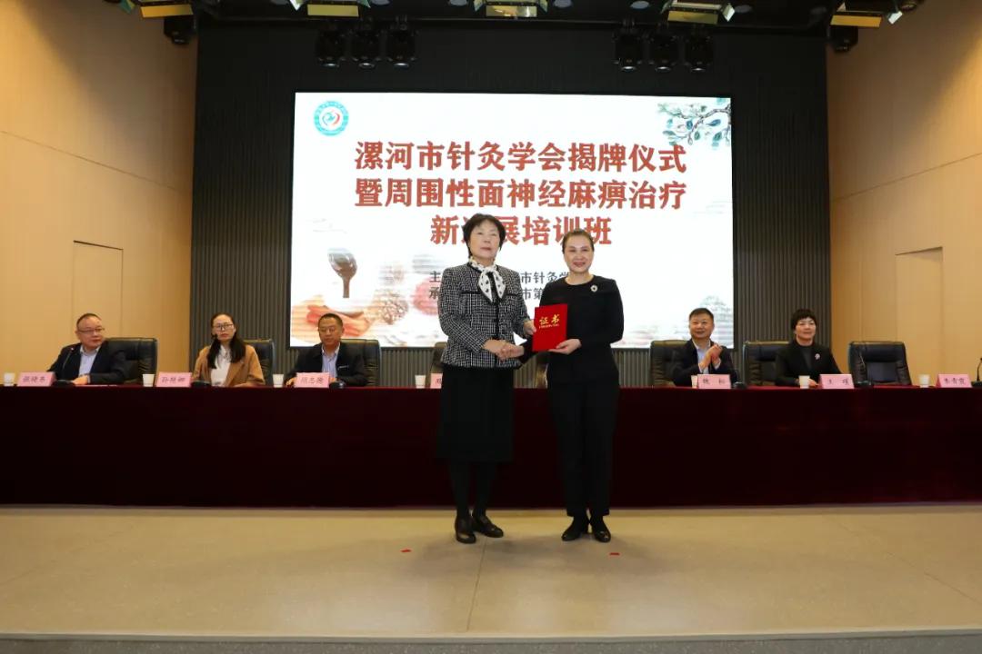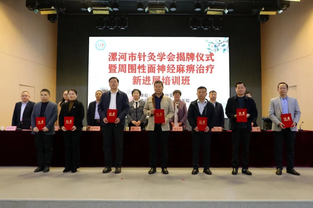 隨后,各參會領(lǐng)導(dǎo)向漯河市針灸學(xué)會會長、副會長頒發(fā)了證書。