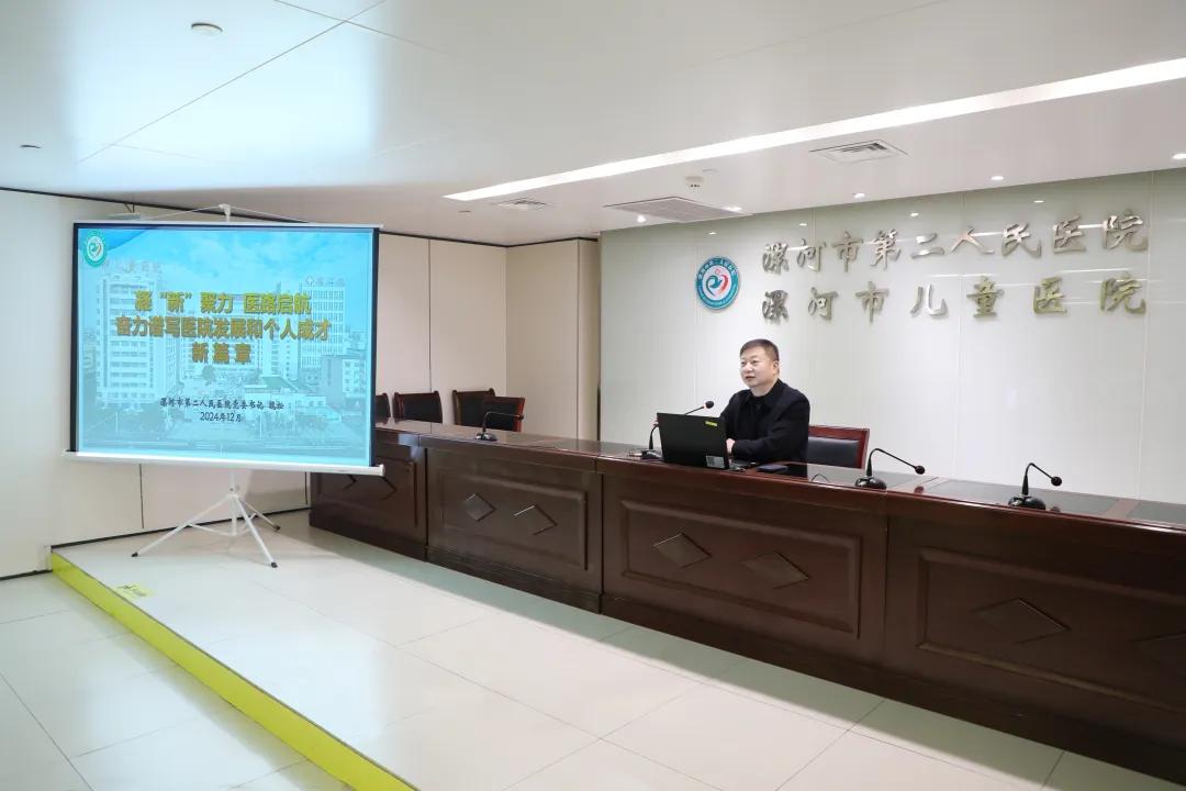 黨委書記魏松以《凝“新”聚力 “醫(yī)”路啟航 奮力譜寫醫(yī)院發(fā)展和個(gè)人成才新篇章》為題,從醫(yī)院的發(fā)展歷程、學(xué)科建設(shè)以及未來(lái)期望等方面為新入職人員上了精彩的第一課。