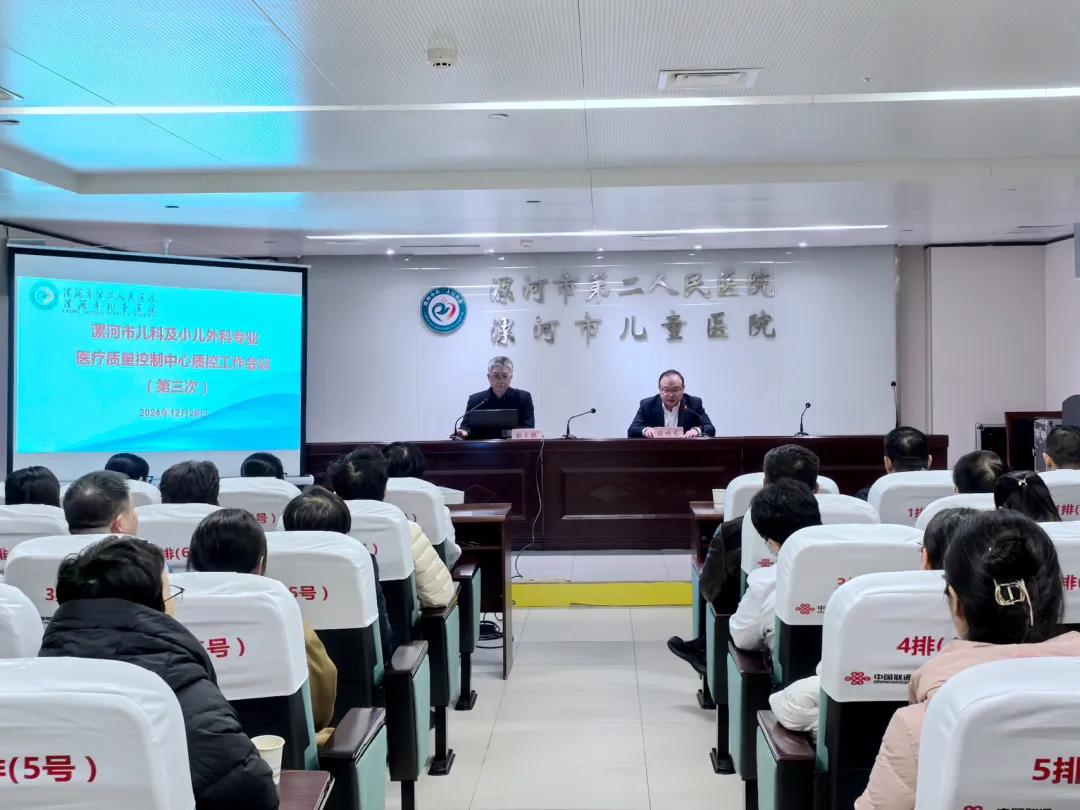 為進一步提高漯河市兒童川崎病、癲癇診療規(guī)范化及降低兒童抗菌藥物使用強度,推動全市兒科醫(yī)療質(zhì)量持續(xù)提升。12月26日下午,漯河市兒科及小兒外科專業(yè)醫(yī)療質(zhì)量控制中心在市二院召開2024年第三次質(zhì)控工作會議暨第二次專題培訓會,副院長張曉東、專委會全體成員及市二級以上醫(yī)療機構(gòu)兒科主任及骨干醫(yī)生參加本次會議。會議由質(zhì)控中心主任郭長根主持。
