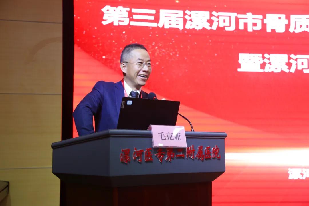 中國人民解放軍總醫(yī)院毛克亞教授首先對漯河市骨科醫(yī)院的邀請表示感謝,并表示本次骨質(zhì)疏松和骨礦鹽疾病分會學術年會為業(yè)內(nèi)同仁搭建了一個互相學習、交流互鑒的良好平臺,為豫中南地區(qū)的骨質(zhì)疏松、骨礦鹽疾病與骨科康復的發(fā)展做出了巨大的貢獻。他表示會盡己所能,與各位同仁分享專業(yè)前沿動態(tài),增強學術交流,也預祝本次大會取得圓滿成功。