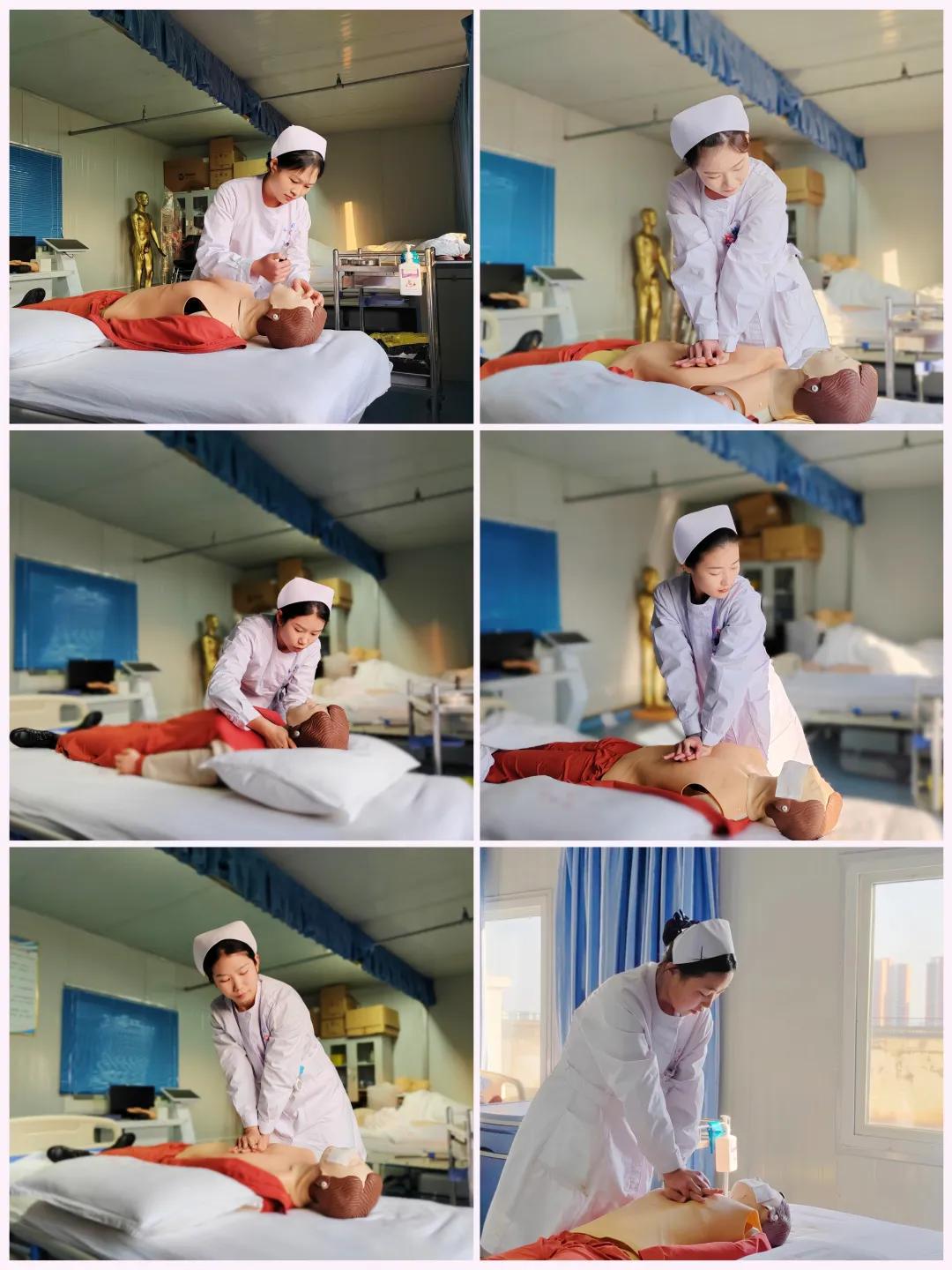 賽前,護(hù)理部精心策劃,設(shè)置理論考核和技能考核兩部分內(nèi)容,技能競(jìng)賽項(xiàng)目有單人徒手心肺復(fù)蘇術(shù)和無(wú)菌技術(shù),采取集中培訓(xùn)和線(xiàn)上學(xué)習(xí)相結(jié)合的形式。護(hù)生運(yùn)用“護(hù)理助手”進(jìn)行理論知識(shí)學(xué)習(xí)和觀看操作視頻,利用休息時(shí)間認(rèn)真反復(fù)練習(xí)操作。
