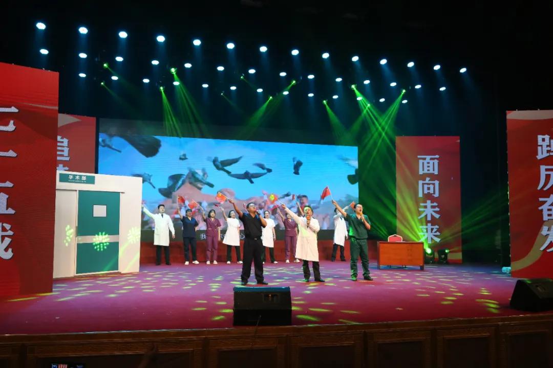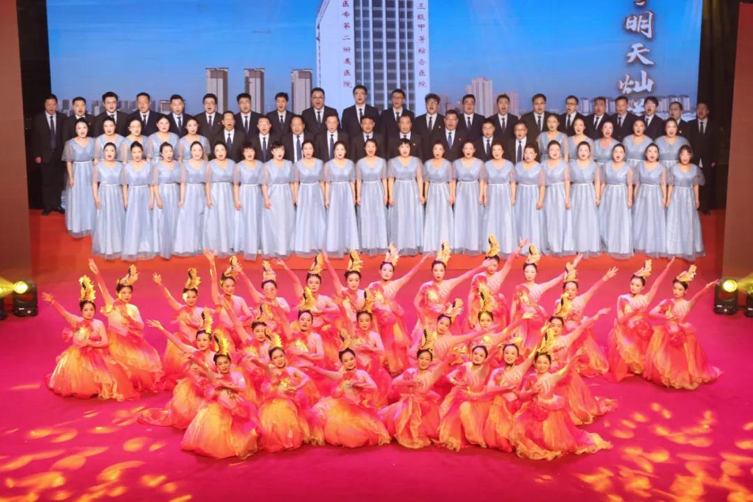 整場(chǎng)演出內(nèi)容豐富多彩、形式多樣,匯集了大合唱、小品、樂器串燒、國(guó)風(fēng)舞蹈秀、現(xiàn)代舞、歌伴舞等十余個(gè)精彩節(jié)目。其中,音樂快板《夸夸我們的好醫(yī)院》表達(dá)對(duì)醫(yī)院七十五周歲生日的祝福以及圓夢(mèng)三甲的喜悅;詩(shī)朗誦《繼往開來,續(xù)譜華章》講述了75年間一代代二附院人,用青春和汗水譜寫不朽華章;情景劇《為你點(diǎn)贊》通過充滿歡笑與溫情的故事,了解這群在平凡的崗位中默默奉獻(xiàn)的白衣天使。所有節(jié)目均由醫(yī)院職工們利用休息時(shí)間構(gòu)思、創(chuàng)作、排演而成,一首首耳熟能詳?shù)慕?jīng)典歌曲時(shí)而慷慨激昂、熱情奔放,時(shí)而激情澎湃、蕩氣回腸,展示了二附院人朝氣蓬勃、拼搏進(jìn)取、奮發(fā)圖強(qiáng)的精神風(fēng)貌,贏得了現(xiàn)場(chǎng)觀眾的陣陣掌聲。最后,聯(lián)歡會(huì)在醫(yī)院合唱團(tuán)帶來的大合唱《沙澧醫(yī)港》中落下帷幕。