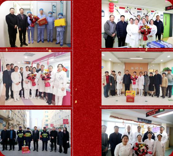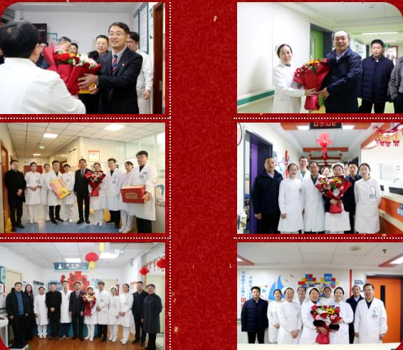 1月29日正值乙巳蛇年大年初一,漯河醫(yī)專(zhuān)二附院(漯河市骨科醫(yī)院、漯河市立醫(yī)院)黨委書(shū)記柴運(yùn)洪、院長(zhǎng)王齊超及院領(lǐng)導(dǎo)吳廣良、曹鵬克、鄭建新、劉國(guó)鋒、吳威等分別帶領(lǐng)各職能科室負(fù)責(zé)人深入各病區(qū)、各科室、陰陽(yáng)趙分院等處看望慰問(wèn)節(jié)日期間依然堅(jiān)守崗位的廣大干部職工,為每一位堅(jiān)守崗位的醫(yī)護(hù)人員和工作人員送上新春的美好祝福與誠(chéng)摯的慰問(wèn)。