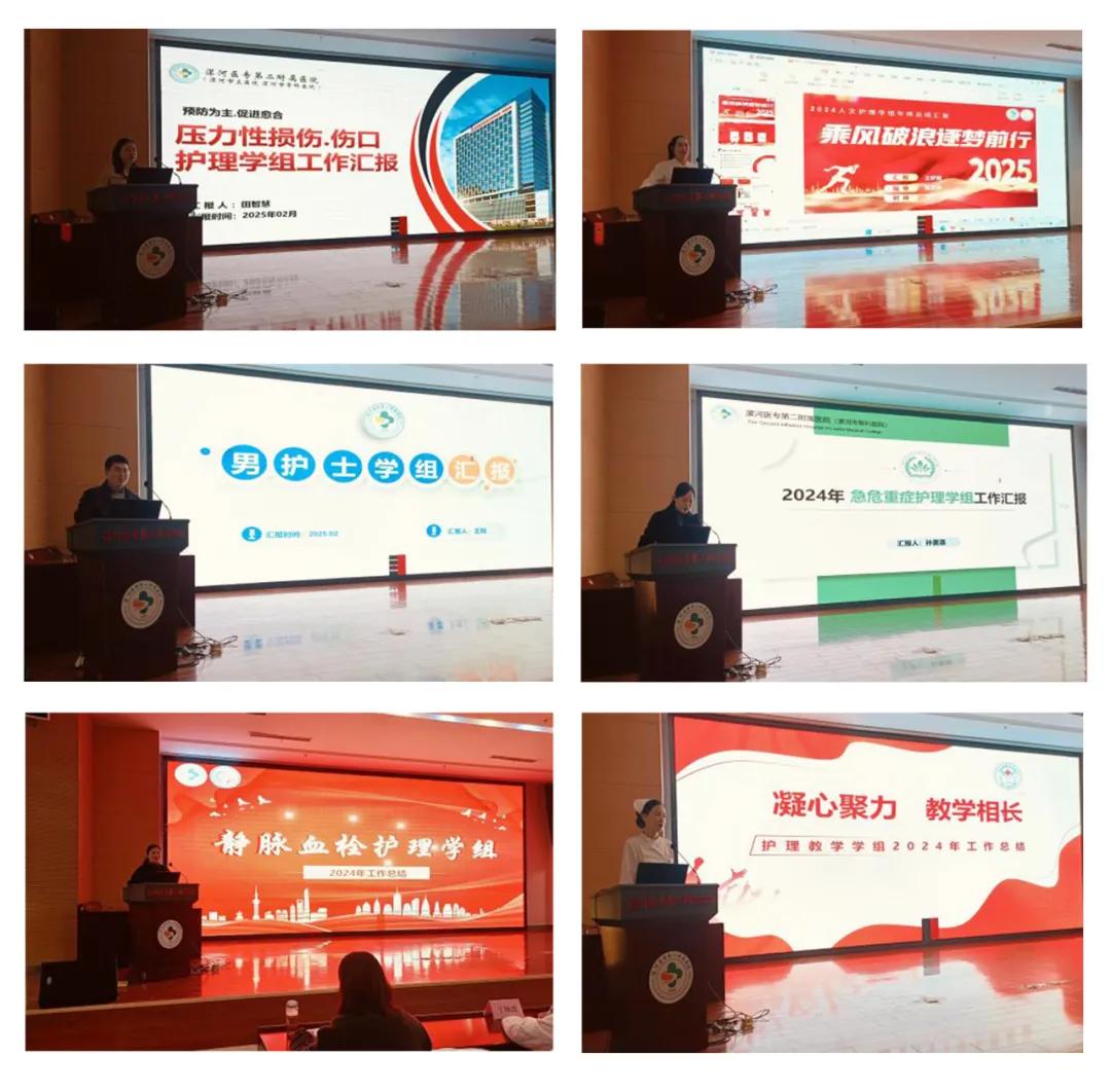 隨后,10個護理學(xué)組依次上臺進行匯報。各學(xué)組代表圍繞2024年度工作目標、取得成果、工作臺賬、存在問題以及2025年工作計劃等方面進行了詳細闡述。在過去的一年中,各學(xué)組緊密圍繞醫(yī)院三甲創(chuàng)建工作,聚焦專科護理發(fā)展,積極開展了一系列卓有成效的工作。在匯報過程中,各學(xué)組也坦誠地指出了工作中存在的問題和挑戰(zhàn)。