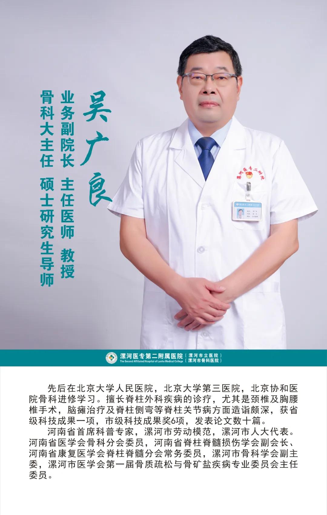 骨醫(yī)名家 | 漯河醫(yī)專二附院(漯河市骨科醫(yī)院)副院長、骨科專家——吳廣良