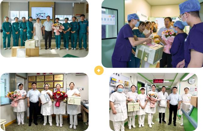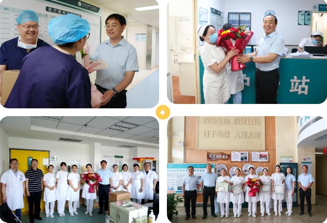 5月12日上午,院黨委書記柴運(yùn)洪、院長王齊超等領(lǐng)導(dǎo)班子來到各科室、各病區(qū),為護(hù)理工作者送上精心準(zhǔn)備的鮮花、蛋糕和慰問品。院領(lǐng)導(dǎo)與護(hù)理人員親切交流,關(guān)懷大家的工作和生活情況, 高度贊揚(yáng)了大家“堅(jiān)守崗位,以過硬本領(lǐng)和作風(fēng),積極投身醫(yī)院高質(zhì)量發(fā)展新征程,真心護(hù)佑人民群眾健康”的初心、實(shí)踐。