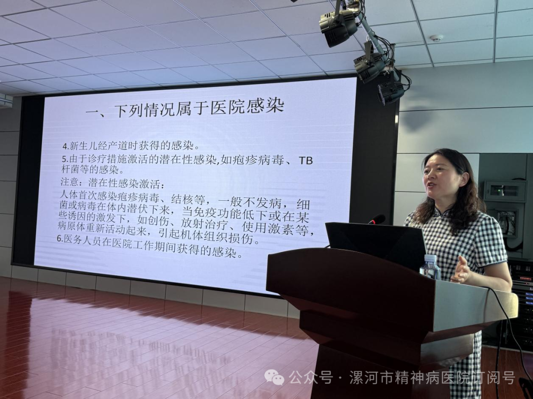 為進一步提升醫(yī)務人員醫(yī)院感染防控能力,5月14日,漯河市精神病醫(yī)院特邀漯河市醫(yī)專二附院醫(yī)院感控辦主任楚巧紅,開展《醫(yī)院感染診斷標準與案例分析》專題培訓,全院臨床、護理、醫(yī)技科室醫(yī)務人員約100余人共同參與。