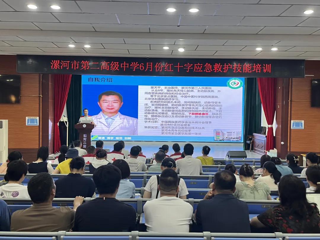 6月17日下午,市二院紅十字會志愿服務(wù)隊走進漯河二高開展應(yīng)急救護技能普及活動,吸引了校領(lǐng)導(dǎo)、全體教師及社團學(xué)生等200余人積極參與,現(xiàn)場氣氛熱烈,效果顯著。