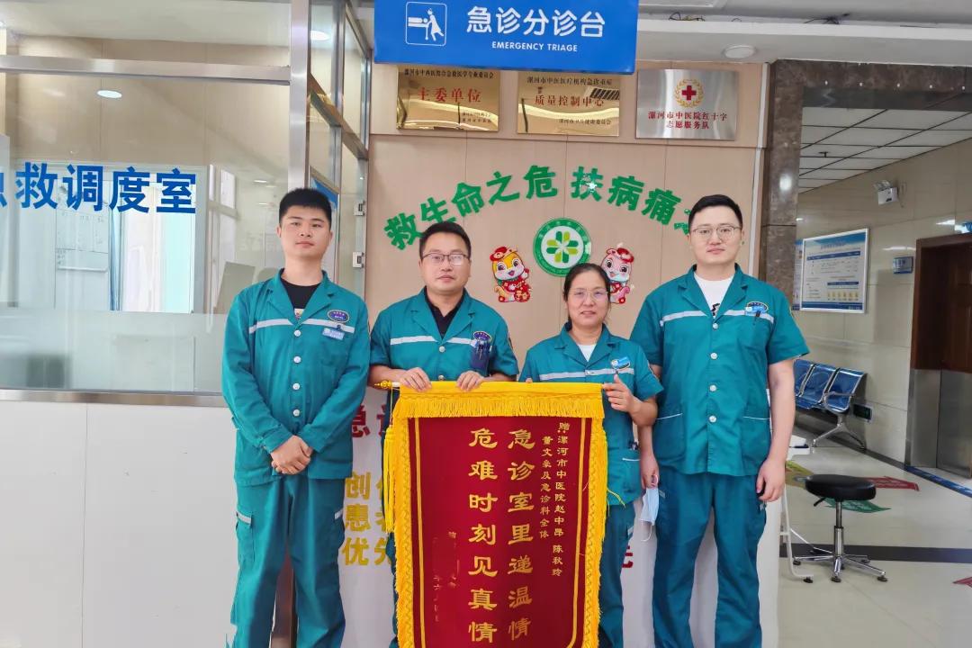 6月19日,患者家屬送來錦旗,對漯河市中醫(yī)院急診科值班醫(yī)護(hù)人員表示感謝!