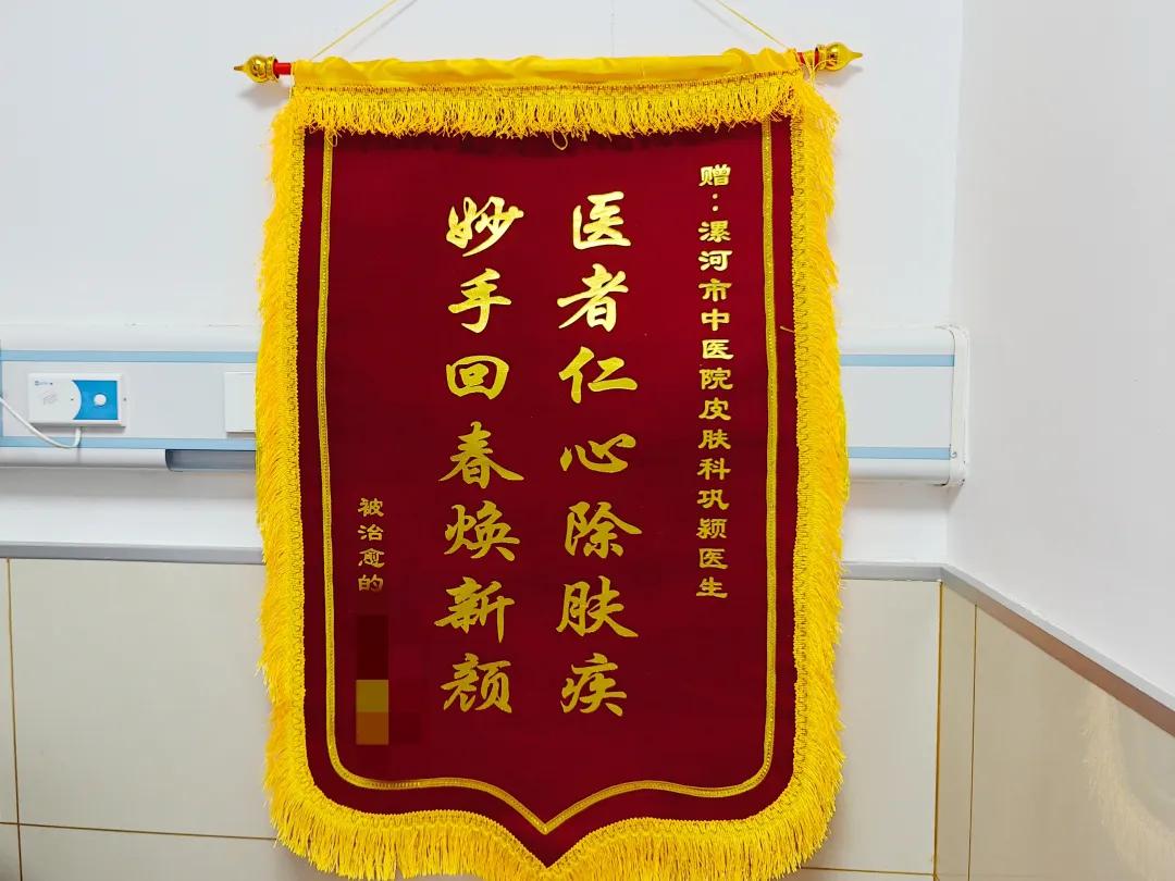 近日,漯河市中醫(yī)院皮膚科鞏潁醫(yī)生收到病人感謝的錦旗,上面寫著“醫(yī)者仁心除膚疾,妙手回春煥新顏”,短短文字表達(dá)對醫(yī)生醫(yī)術(shù)的認(rèn)可與自己頭發(fā)重新生長的喜悅。