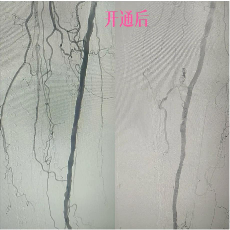 4. 即刻“見證”:再次造影顯示,原本狹窄閉塞的血管段血流恢復(fù)通暢!足部遠(yuǎn)端血管顯影較前明顯改善。手術(shù)過程順利,患者靜息痛較前明顯改善。