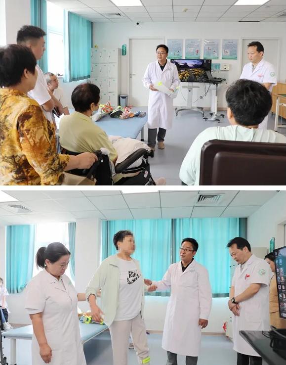 在11樓康復(fù)病區(qū),安恒遠(yuǎn)教授深入病房,對科室重點、疑難康復(fù)患者進(jìn)行了細(xì)致的床邊查房和評估,并結(jié)合患者的具體病情、影像資料及當(dāng)前康復(fù)方案,與康復(fù)科醫(yī)護(hù)人員進(jìn)行了深入交流和討論,提出了個體化診療建議和康復(fù)方案優(yōu)化意見。