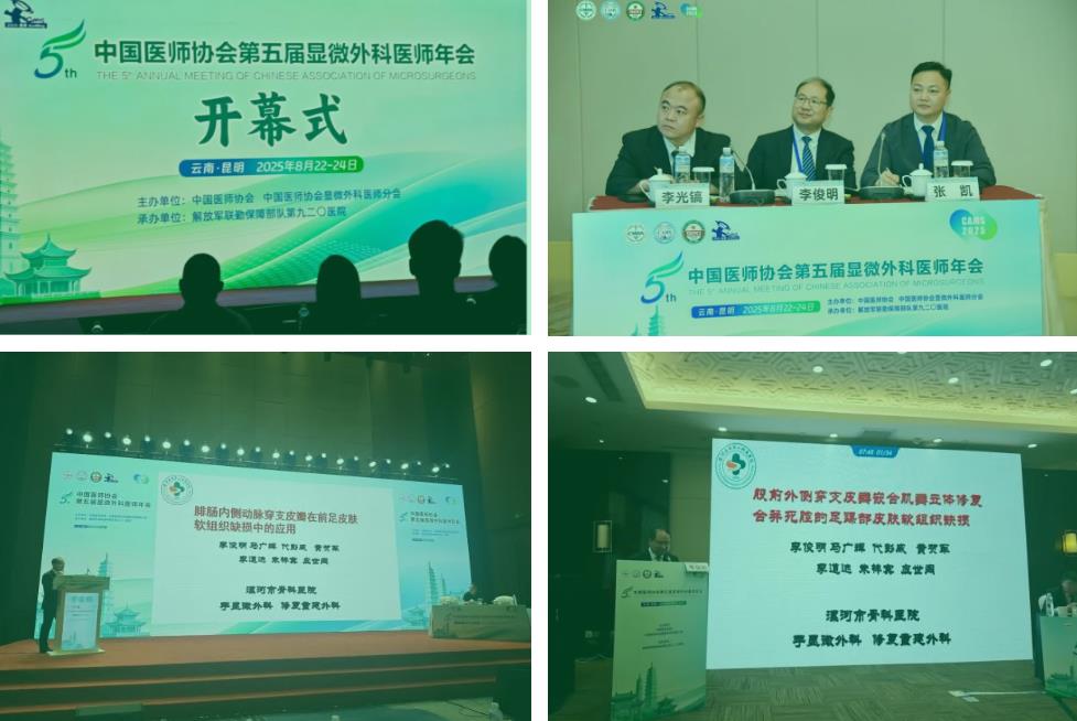 春城昆明,繁花似錦,群賢畢至。中國(guó)醫(yī)師協(xié)會(huì)第五屆顯微外科醫(yī)師年會(huì)于8月22日至8月24日在美麗的春城昆明召開(kāi),漯河醫(yī)專(zhuān)二附院(漯河市骨科醫(yī)院、漯河市立醫(yī)院)手顯微外科李俊明教授團(tuán)隊(duì)受邀參加本次會(huì)議。本次會(huì)議以“精準(zhǔn)顯微外科,創(chuàng)新融合發(fā)展”為主題,共同探討顯微外科技術(shù)的最新進(jìn)展、臨床經(jīng)驗(yàn)的深度分享以及未來(lái)發(fā)展的戰(zhàn)略方向。