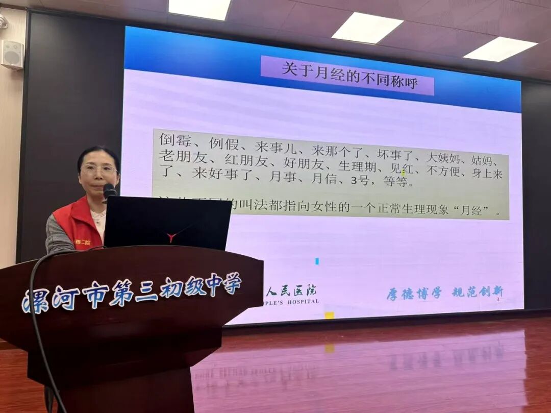 10月16日上午,市二院婦產(chǎn)科黨支部走進市第三初級中學(xué)開展以“護航花季 守護成長”為主題的健康科普講座。活動由黨委副書記、院長胡海英帶隊,組織婦產(chǎn)科黨員專家團隊走進校園,為200余名中學(xué)生帶來一堂生動實用的青春期健康教育課,引導(dǎo)她們以科學(xué)、健康的態(tài)度面對青春期成長。