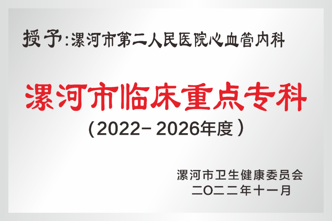 科室是國家級胸痛中心、國家心血管疾病臨床研究中心科研基地、河南省高血壓防治中心成員單位、漯河市臨床重點??啤鸷邮行乃ヂ?lián)盟成員單位等專業(yè)殊榮,先后榮獲漯河市青年五四獎?wù)录w、市衛(wèi)健系統(tǒng)先進集體、市衛(wèi)健系統(tǒng)優(yōu)秀醫(yī)師團隊、市衛(wèi)健系統(tǒng)優(yōu)秀護理團隊等榮譽稱號。(伊獻麗)