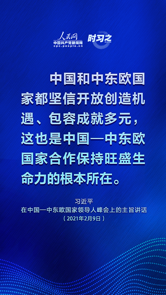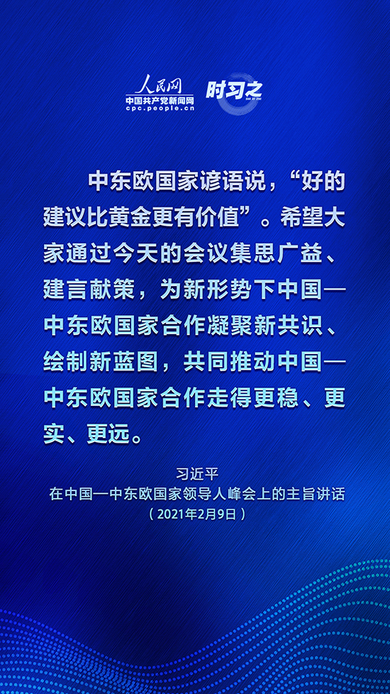 2月9日,國(guó)家主席習(xí)近平在北京以視頻方式主持中國(guó)—中東歐國(guó)家領(lǐng)導(dǎo)人峰會(huì)并發(fā)表主旨講話。中國(guó)—中東歐國(guó)家合作為何能保持旺盛生命力?新形勢(shì)下,中國(guó)—中東歐國(guó)家合作如何發(fā)展?人民網(wǎng)·中國(guó)共產(chǎn)黨新聞網(wǎng)“時(shí)習(xí)之”欄目摘錄了習(xí)近平的精彩講話,與您一起學(xué)習(xí)。