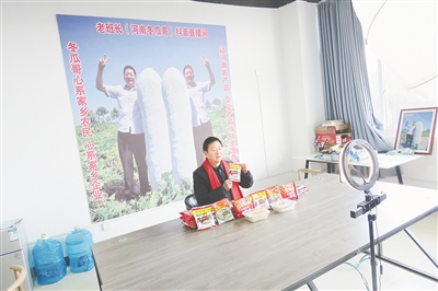 “家人們,歡迎大家到我的直播間。今天我給大家介紹幾種來(lái)自我們漯河的美食……”2月16日,臨潁元洋商貿(mào)有限公司的直播間,一位精神矍鑠的老人正對(duì)著手機(jī)鏡頭介紹南街村系列產(chǎn)品。他就是被大家親切地稱為“河南冬瓜哥”的張付慶。近年來(lái),憑借網(wǎng)絡(luò)直播,張付慶成為當(dāng)?shù)丶矣鲬魰缘闹r(nóng)帶貨“網(wǎng)紅”,退休后繼續(xù)發(fā)光發(fā)熱,為社會(huì)貢獻(xiàn)力量。