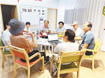 為什么要在一起讀書?“我們就住在附近。雖然退休了,但大家一致認(rèn)為要堅(jiān)持學(xué)習(xí),跟上時(shí)代步伐。我們經(jīng)常聚在一起讀書,不僅學(xué)習(xí)中華優(yōu)秀傳統(tǒng)文化,還集體閱讀時(shí)事新聞、保健知識、生活常識等方面的內(nèi)容,并交流心得、分享體會(huì)。”82歲的王浩山說,后來,他們就把讀書會(huì)固定到每周二、周五下午3點(diǎn)至5點(diǎn)舉辦,自愿參加。讀書會(huì)多則七八人、少則四五人,氛圍很好。