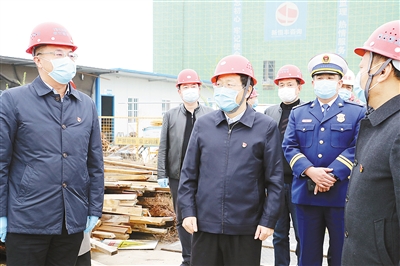 3月9日,市委書記蒿慧杰在市民之家建筑工地檢查安全生產(chǎn)工作。記者 王慶建 攝