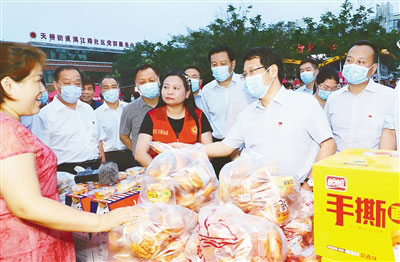6月15日晚,市委書記蒿慧杰等在煙廠花園夜間廣場(chǎng)調(diào)研“千企惠民促消費(fèi)”活動(dòng)開展情況。