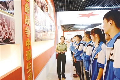 9月19日上午,市外語中學(xué)組織部分學(xué)生來到漯河市全民國防教育中心參觀學(xué)習(xí),激發(fā)學(xué)生愛國熱情。姜國喜 攝