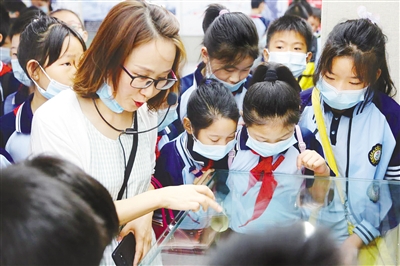 9月17日上午,受降路小學(xué)分校組織優(yōu)秀少先隊員,來到漯河中州抗戰(zhàn)紀(jì)念館,緬懷革命先烈。圖為同學(xué)們認(rèn)真聆聽講解員的講解。曹會軍 攝