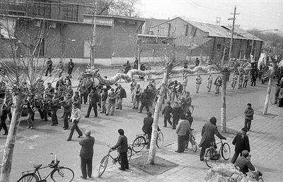 一張黑白老照片中,馬路上是民俗表演的隊(duì)伍,路邊是圍觀的群眾。這富有年代感的場(chǎng)景,引得50多名網(wǎng)友留言猜測(cè)是哪里,感慨歲月變遷,在朋友圈掀起一場(chǎng)回憶熱潮。網(wǎng)友“隨風(fēng)”留言:“看路邊的法國(guó)梧桐應(yīng)該是濱河路或者交通路南段。”網(wǎng)友“晴天”留言:“看到照片中大家都推著二八自行車,想起了那個(gè)有一輛自行車便滿是自豪的年代。橫梁上馱著孩子,后座上坐著老婆,當(dāng)時(shí)這樣出門是一件特別有面子的事兒。”