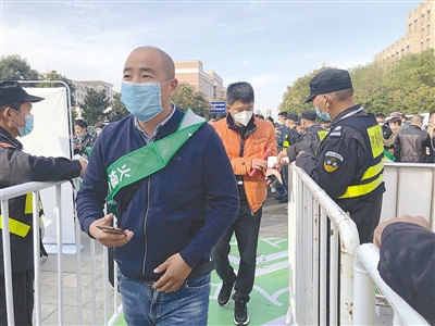 參展人員入場(chǎng)時(shí)接受體溫檢測(cè)。本報(bào)記者 韓亞黨 攝