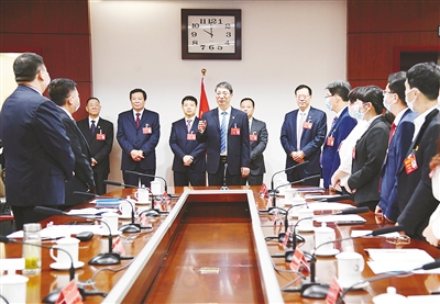 9月25日上午,市領(lǐng)導(dǎo)看望出席市第八次黨代會代表。記者 胡鴻麗 攝