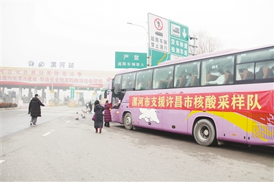 1月6日上午8時許,我市在京港澳高速公路漯河站出入口舉行支援許昌市核酸采樣隊出征儀式,203名醫(yī)務人員組成的核酸采樣隊馳援許昌開展核酸檢測工作(如圖)。
